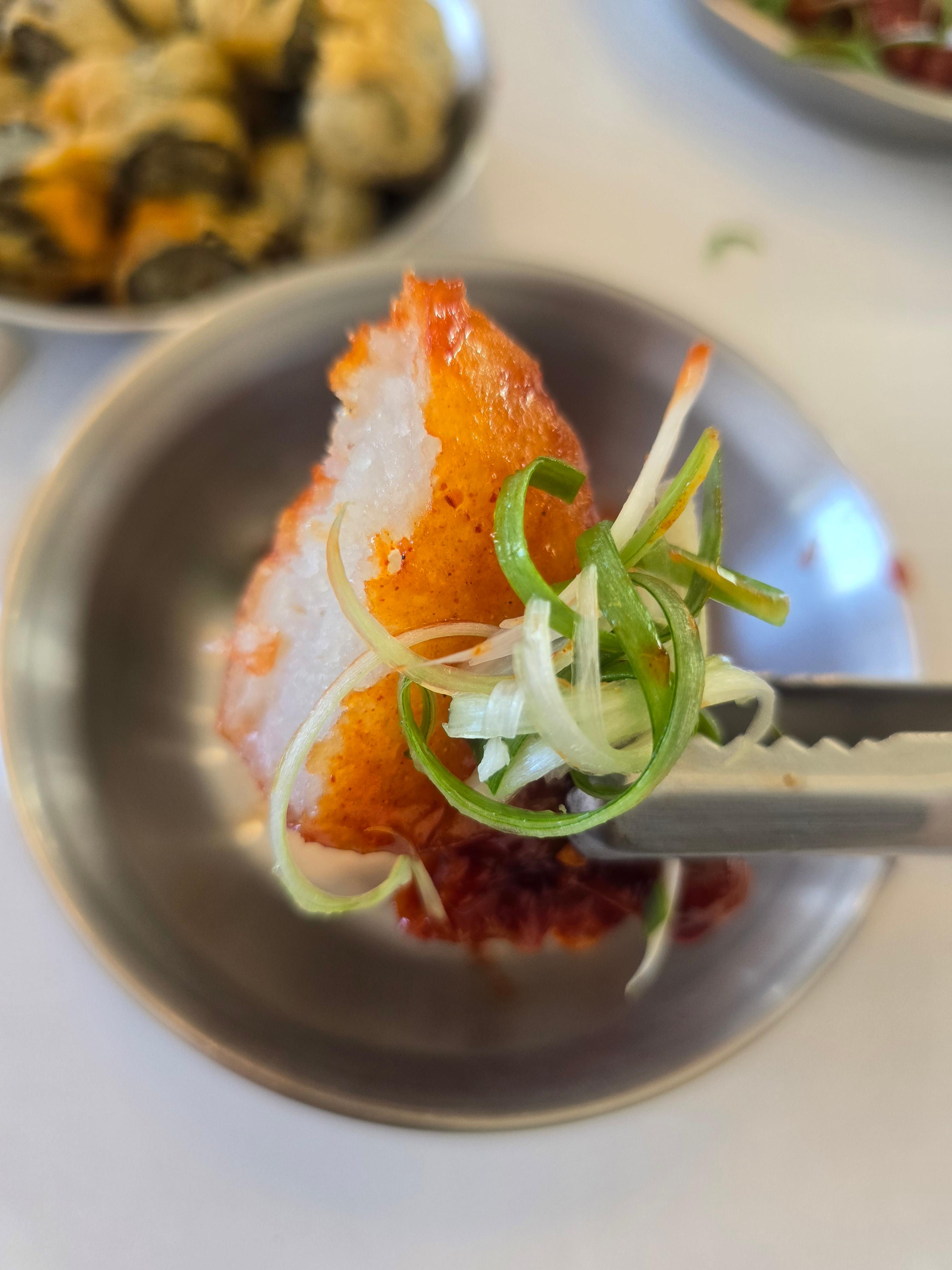 메뉴판에는 적혀 있지 않지만, 가게 내부에 별도로 붙어 있는 메뉴입니다. 바삭하게 튀겨낸 만두에 매콤달콤한 소스를 버무린 이 메뉴는 떡볶이가 끓기를 기다리는 동안 에피타이저로 즐기기에 좋습니다. 무침 만두위에 함께 나온 채썬 파를 곁들여 먹었더니 매콤달콤한 맛을 파향이 적당히 잡아주면서 뒷맛이 깔끔해져 더 맛있었습니다. 5천 원의 행복을 놓치지 마세요.
