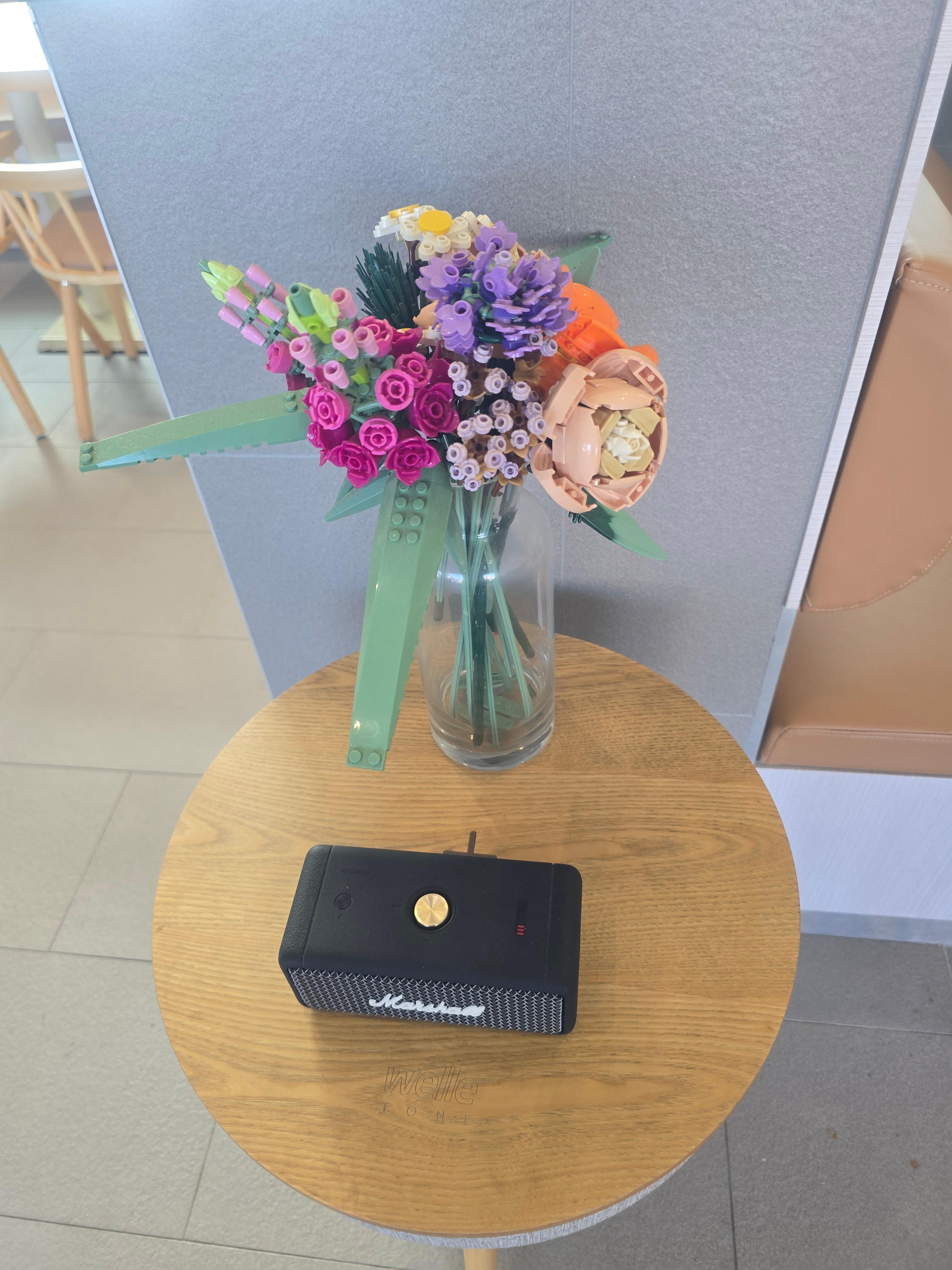 🏠 반전 매력의 인테리어 매장 안으로 들어서면 떡볶이집이라고는 믿기지 않을 만큼 쾌적하고 세련된 공간이 펼쳐집니다. 전체적으로 화이트 톤의 깔끔한 인테리어가 돋보이며, 곳곳에 배치된 레고 블록으로 만든 꽃장식이 키치하면서도 귀여운 포인트를 줍니다.